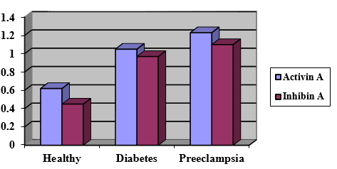 The administration of activin-A to the placenta under normal conditions, diabetes, and preeclampsia showed the lowest average in healthy mother conditions of 0.62 mIU / ml, followed by diabetic mother of 1.05 mIU / ml and preeclampsia of 1.23 mIU / ml. While inhibin-A shows an average in the placenta healthy mother conditions of 0.45 mIU / ml, followed by diabetes conditions of 0.97 mIU / ml and preeclampsia of 1.10 mIU / ml. Hence this concluded that placental activin-A and inhibin-A levels both in preeclampsia pregnancy have higher values than diabetes mothers.
